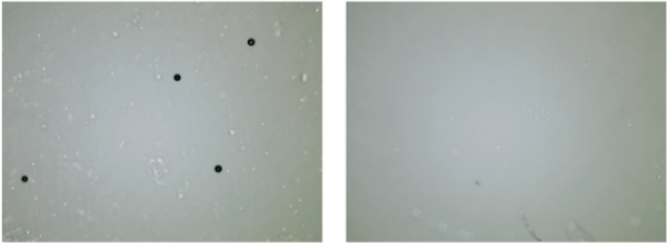 顯微鏡觀(guān)察細(xì)胞幾乎全部破碎(左圖處理前,右圖處理后)
