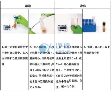 Typical application one, QUECHERS method of rapid sample pretreatment for pesticide residue inspection: