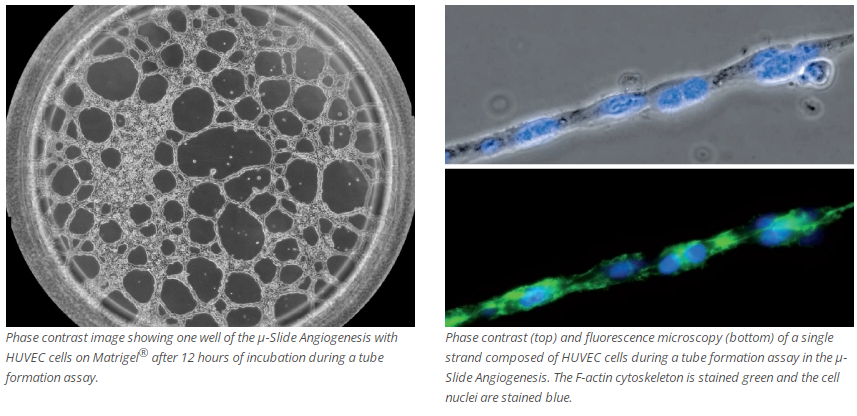 Introduction:A μ-Plate with 96 wells to investigate angiogenesis in high throughput tube formation assays