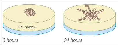 For a tube formation assay, endothelial cells are seeded on top of a 10 μl gel layer (basement membrane-like surface), where they form capillary-like structures. Typically, Matrigel? is used. The tube formation ability of the cells can be used to analyze the pro- or anti-angiogenic potential of various drugs.