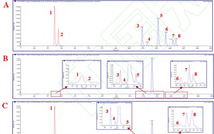 在此基礎上通過超高通量組織研磨儀和真空離心濃縮儀進行優化實驗步驟,超高通量組織研磨儀使樣品均質化更徹底,方便后續萃取;真空離心濃縮儀補充了溶液蒸發過程中的爆沸,減去了添加飽和NaCl的步驟,減少后續離子干擾,使本實驗方法更快速安全,靈敏準確。