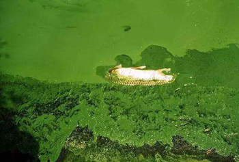 富營養化會影響水體的水質,會造成水的透明度降低,使得陽光難以穿透水層,從而影響水中植物的光合作用,可能造成溶解氧的過飽和狀態,造成魚類大量死亡。同時,因為水體富營養化,水體表面生長著以藍藻、綠藻為優勢種的大量水藻,形成一層“綠色浮渣”,致使底層堆積的有機物質在厭氧條件分解產生的有害氣體和一些浮游生物產生的生物毒素也會傷害魚類。因富營養化水中含有硝酸鹽和亞硝酸鹽,人畜長期飲用這些物質含量超過一定標準的水,也會中毒致病。